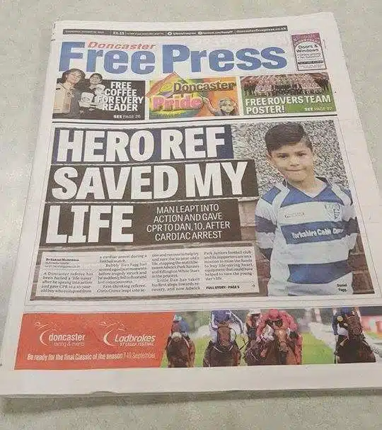 “Dan had a cardiac arrest on 21st August 2016 while playing football, with CPR given straight away and the quick attendance of the emergency services he has made a full recovery. As a football club we at Adwick Park Rangers raised money from a just giving page that was set up to install a defibrillator on our local park for the whole community. A fun day was arranged on the bank holiday where we raised more than enough money to get a few defibrillators, one for the park and some portable ones. With the extra money raised we have split it between Leeds General Hospital Ward 51, Air Ambulance and Sudden Cardiac Arrest UK which provided support and was a lifeline to Dan’s Mum Hayley Thomson who is a member of the group”
